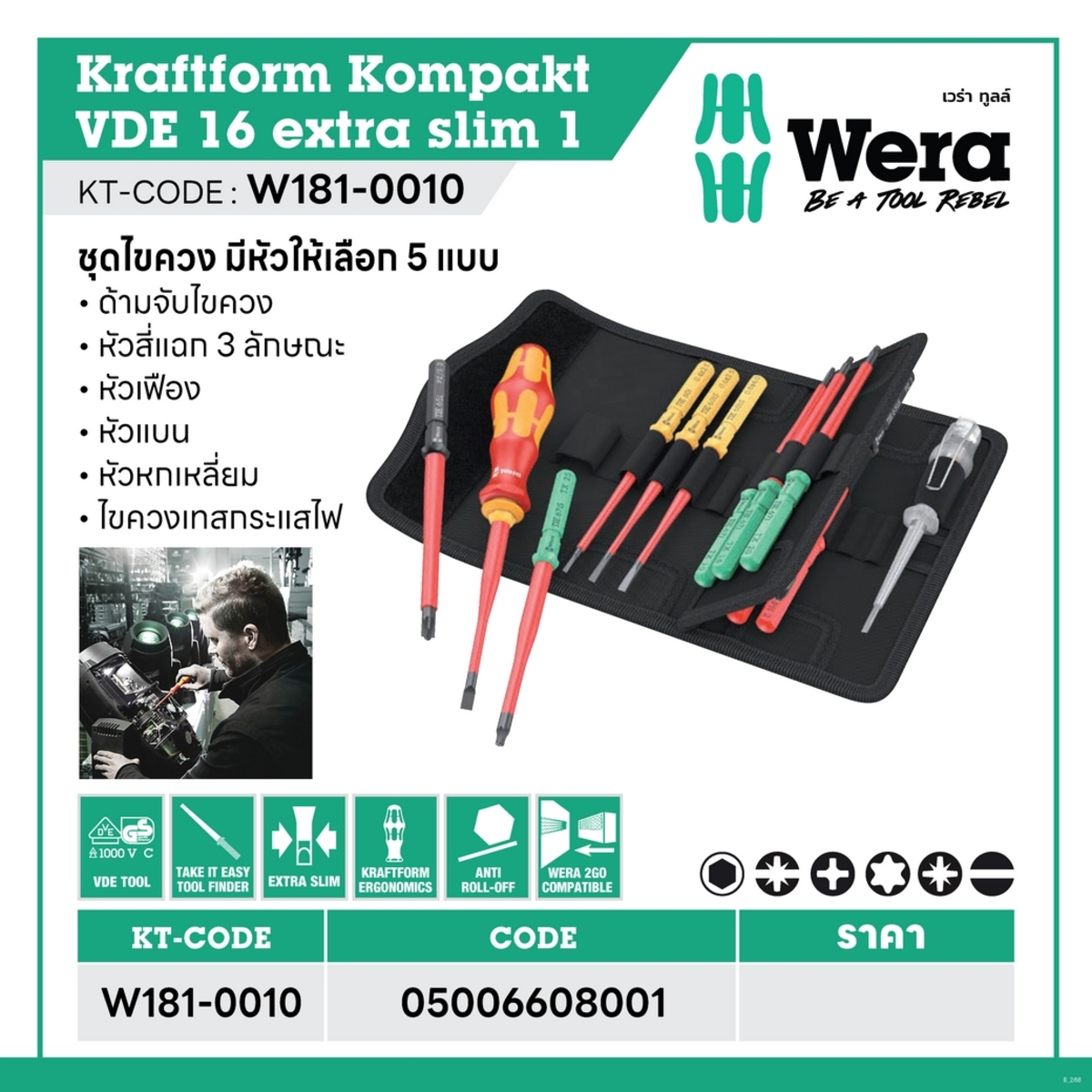 • 2 ชิ้น Kraftform Kompakt VDE 65 iS PZ/S Take it easy : # 1 x 157 มม, # 2 x157 มม